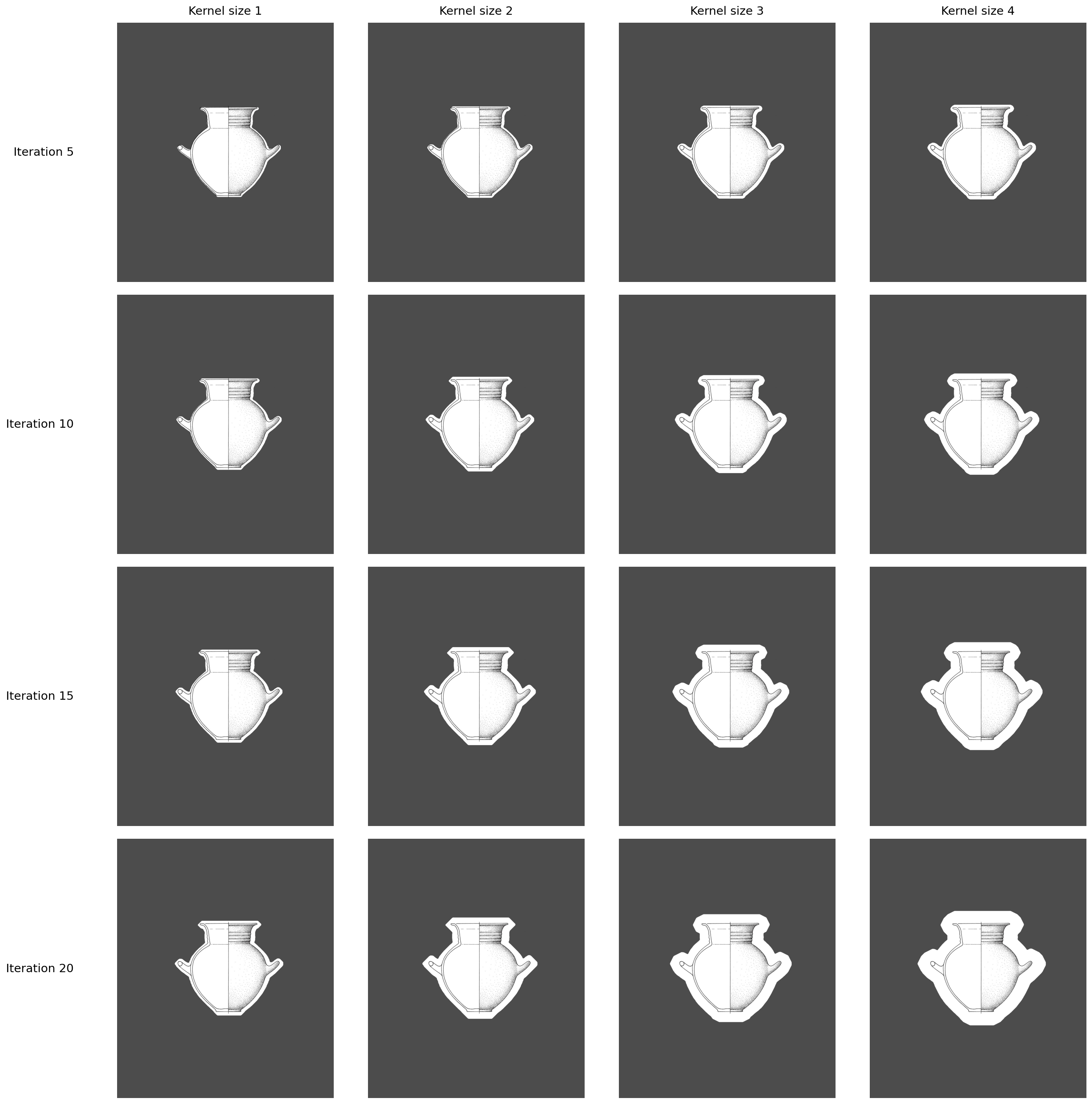 The results of applying different Kernel size and Iterations are shown.